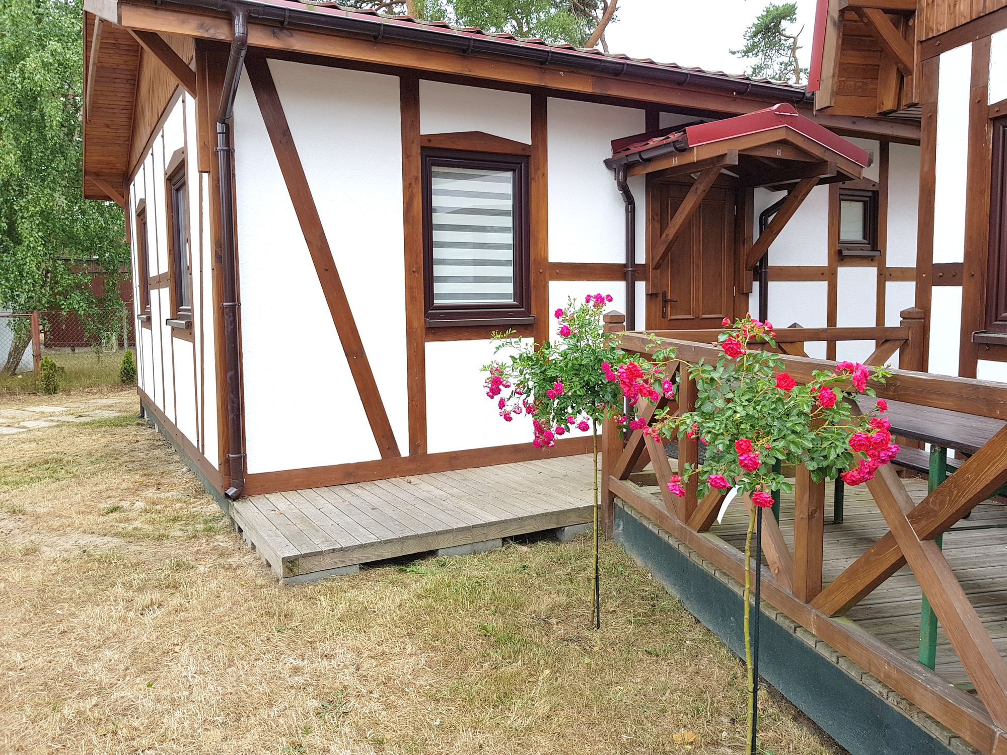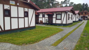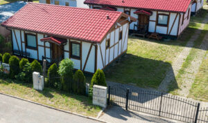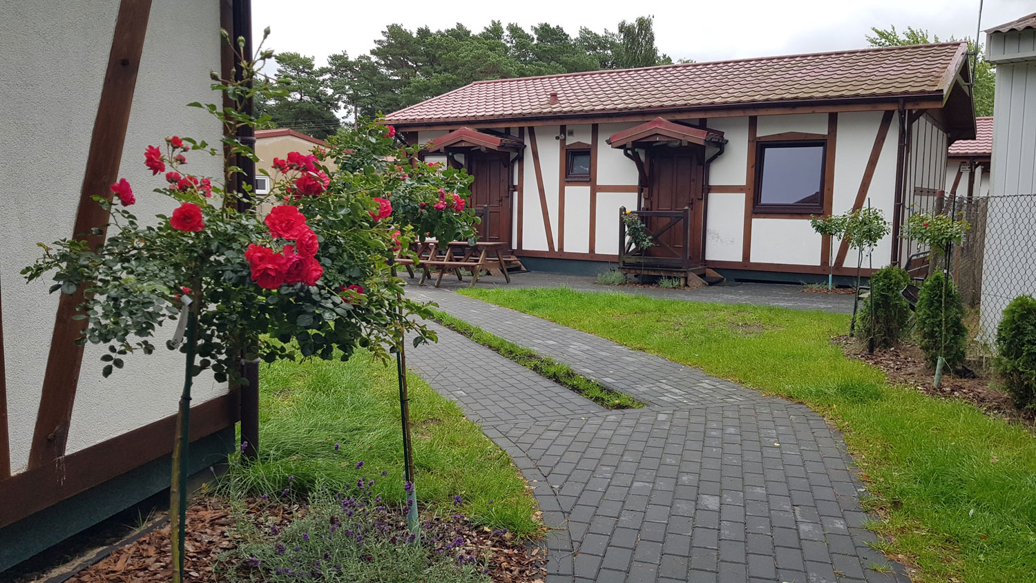 Komfortowe domki otoczone kwitnącymi różami i pachnącą lawendą – idealne na rodzinny wypoczynek.