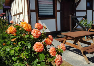 Nasz ośrodek to nie tylko noclegi blisko morza, ale także piękne otoczenie pełne zieleni i kwiatów. Przy domkach rośnie mnóstwo kwitnących, pachnących róż oraz lawendy, które wprowadzają wyjątkową atmosferę i sprawiają, że pobyt u nas staje się jeszcze bardziej relaksujący. Spacerując po terenie ośrodka, można poczuć przyjemny zapach kwiatów, który dodaje uroku każdemu letniemu porankowi i wieczorowi.